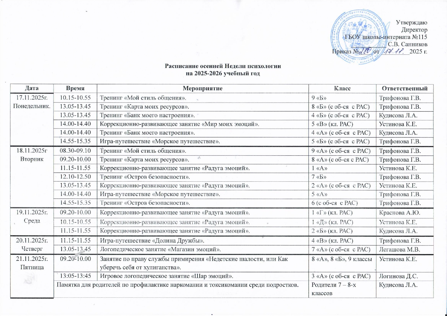 Расписание осенней Недели психологии на 2025-2026 учебный год